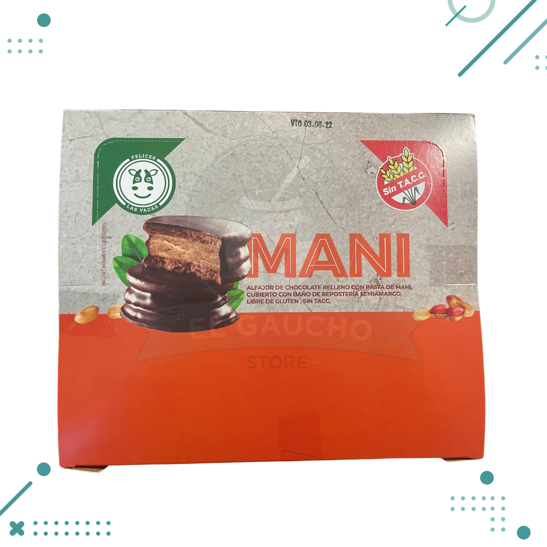 Alfajor Vegano Chocolate con MANI Felices las Vacas 75g (pack de 12).(caja 12 un)